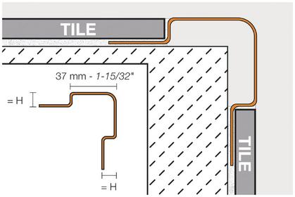 In addition, the profile produces a radiused edge along the outside wall corner for a clean, decorative finish. Schluter-ECK-E features trapezoid-perforated anchoring legs that are secured in the mortar bond coat beneath the tile.
