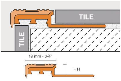 TREP-T Stair-Nosing Profile H = Tile thickness Light beige Grey Black brown 8 - 5/16" THB8 TG8 TSB8 11 - 7/16" THB11 TG11 TSB11 Accessories End Cap EKT/HB EKT/G EKT/SB Installation