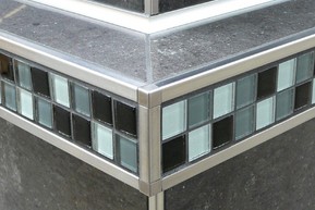 Schluter-QUADEC-FS features an anodized layer that retains a uniform appearance during normal use. The surface, however, is susceptible to scratching and wear and may be damaged by grout or setting material. Cementitious materials, in conjunction with moisture, become alkaline. Since aluminum is sensitive to alkaline substances, exposure to the alkali (depending on the concentration and duration of exposure) may result in corrosion (aluminum hydroxide formation). Therefore, it is important to remove mortar or grout residue immediately from visible surfaces. In addition, ensure that the profile is solidly embedded in the setting material and that all cavities are filled to prevent the collection of alkaline water.
